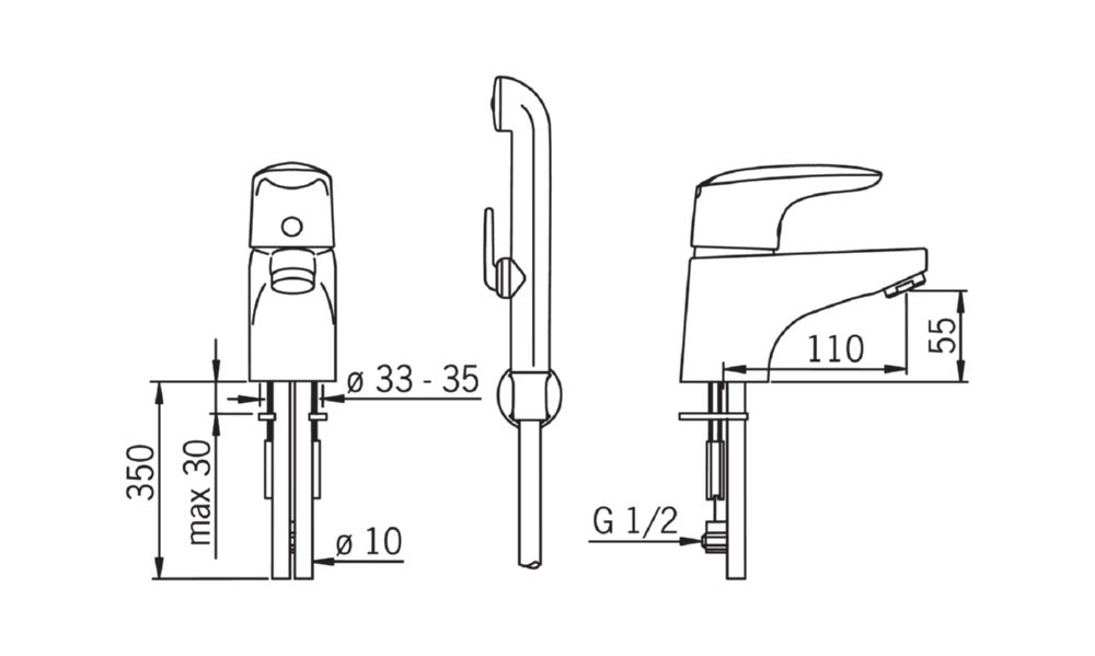 Смеситель для умывальника с ручным душем Bidetta - длина шланга 1,5 м.; - настенный держатель. Двухкомпонентная прочная рукоятка оснащена эко-кнопкой для ограничения температуры и расхода воды. При нажатии эко-кнопки расход можно увеличить.