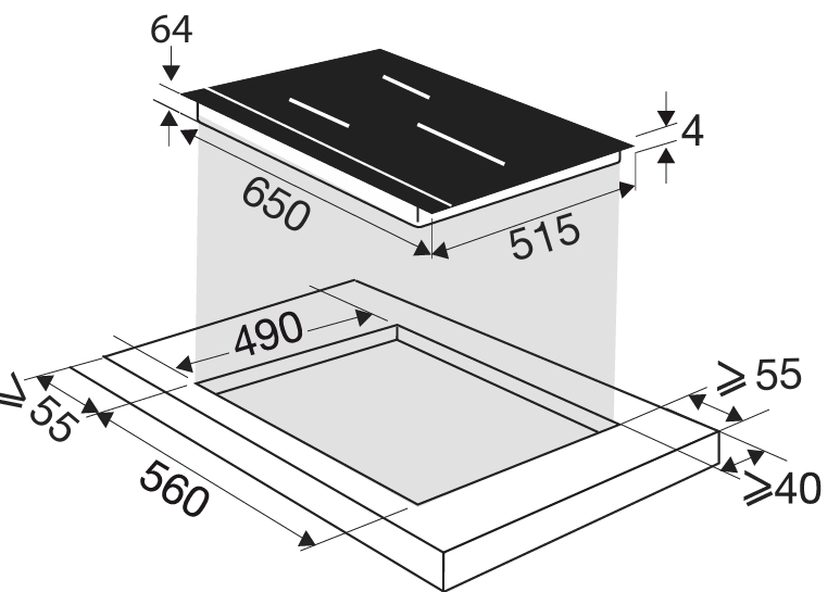 - Габариты ниши для встраивания ВхШхГ, мм: 560х490