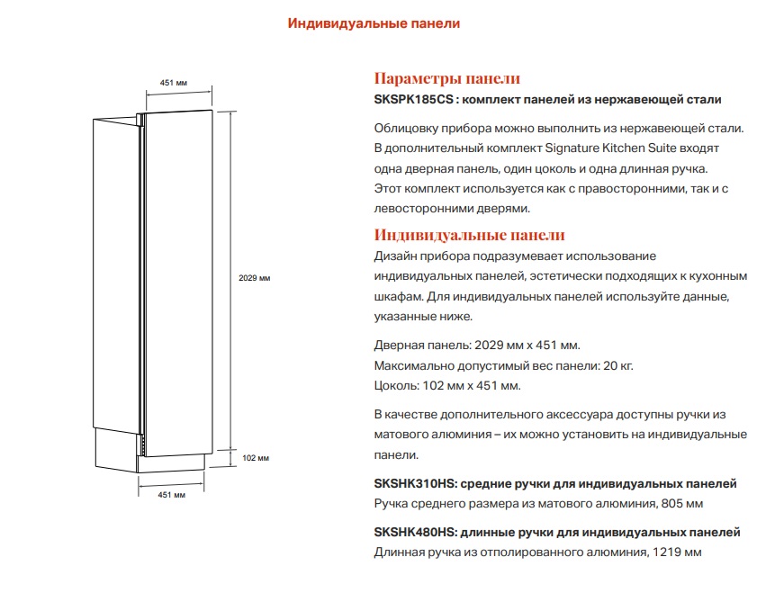 - Комплект панелей/ручек/цоколей из нержавеющей стали: SKSPK185CS