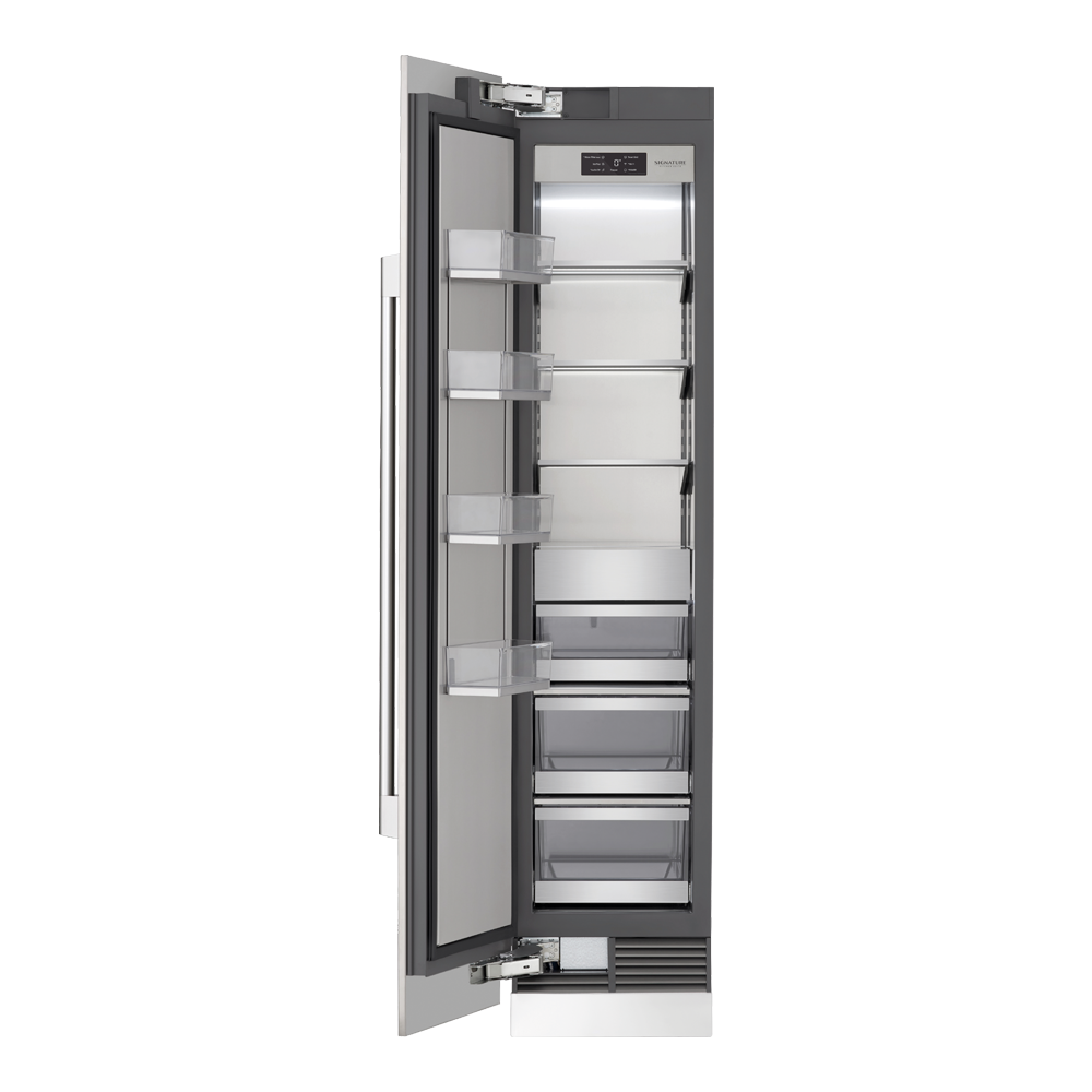 Просторные, исключительно точные морозильные камеры подходят для того, чтобы использовать их как отдельностоящий прибор, установить стальные панели Signature Kitchen Suite или навесить мебельный фасад.
